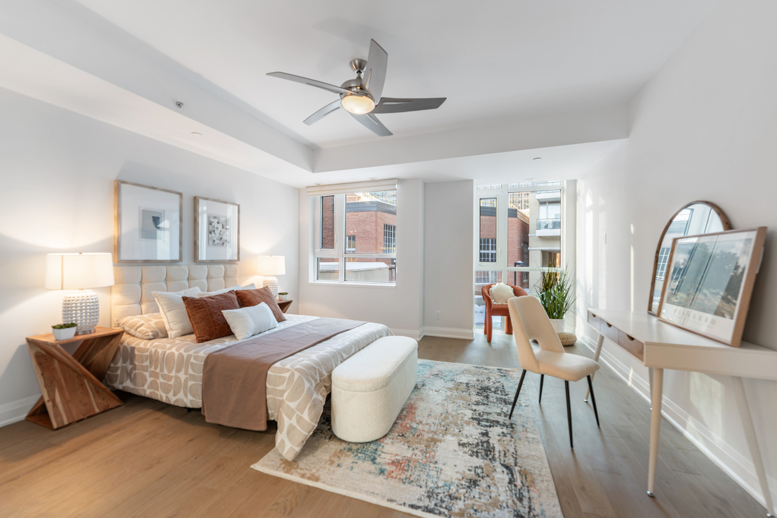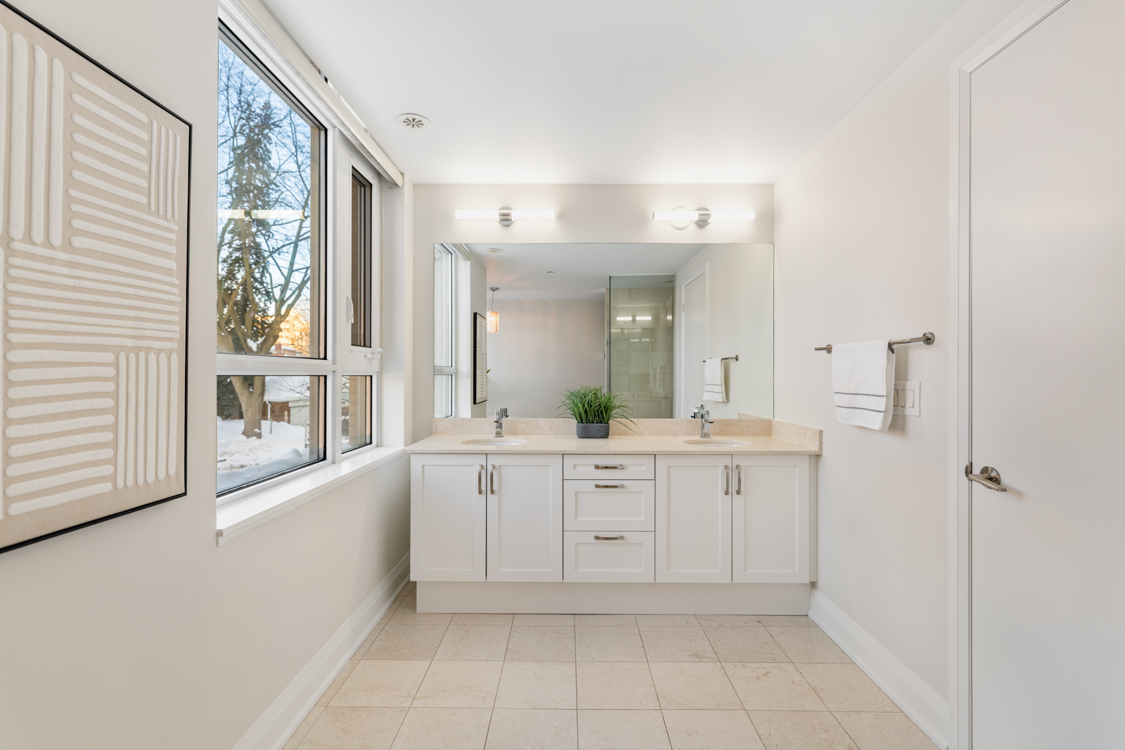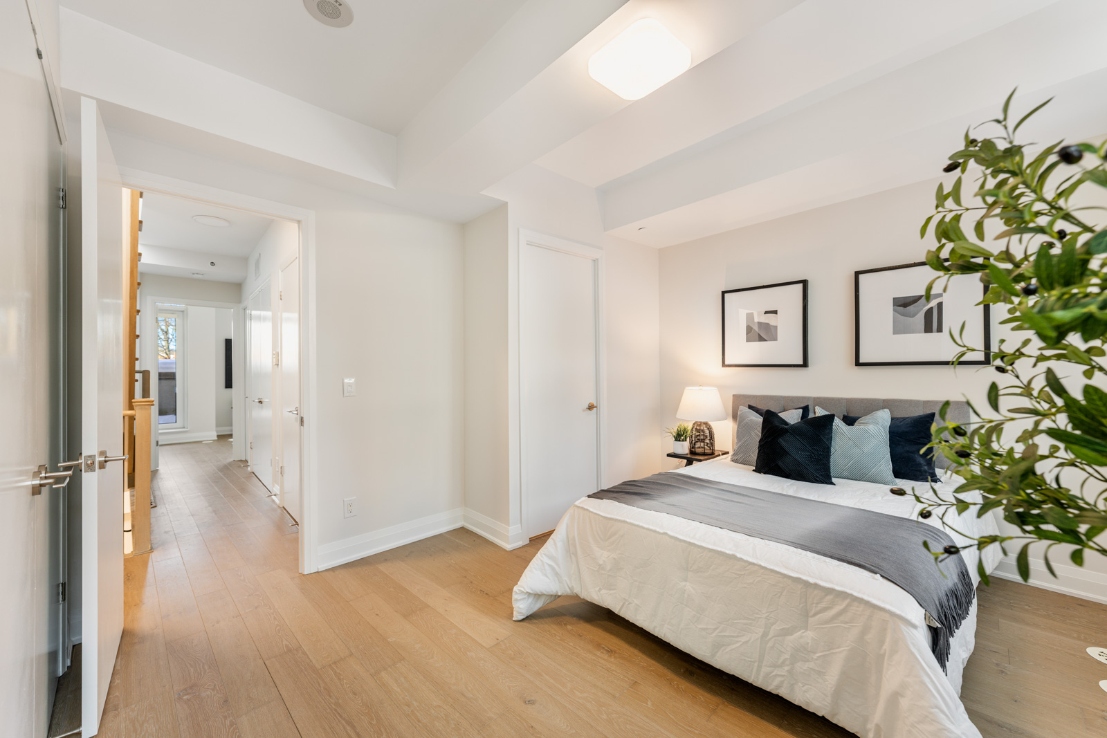 The primary bedroom is conveniently located on the second floor. Spacious enough for a king size bed, the suite is completed by two large walk-in closets, and a sunny and spacious 5 piece ensuite. The third floor is home to the second and third bedrooms, complete with their own two piece bathrooms, and a shared Jack-and-Jill tub / shower set up. Perfect for family, guests, or flexible home-office use.