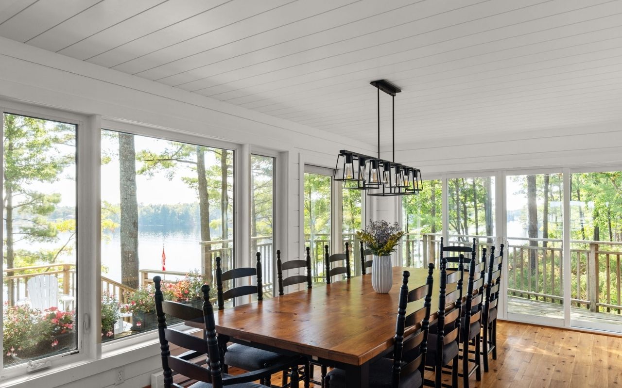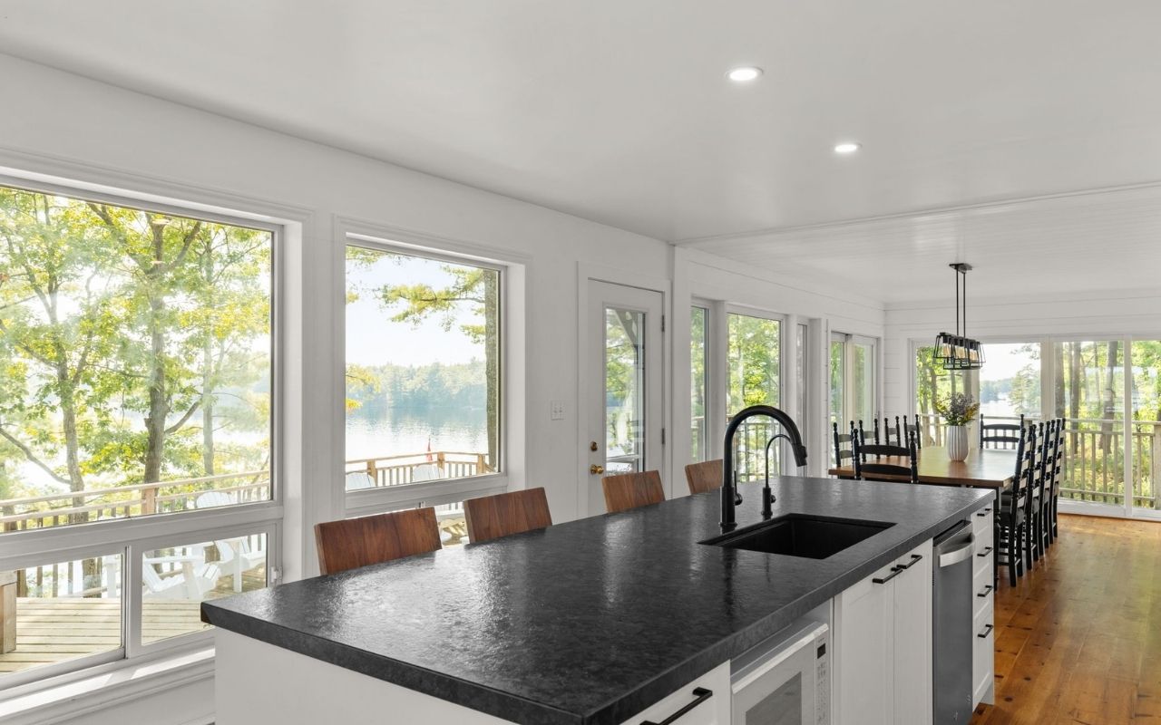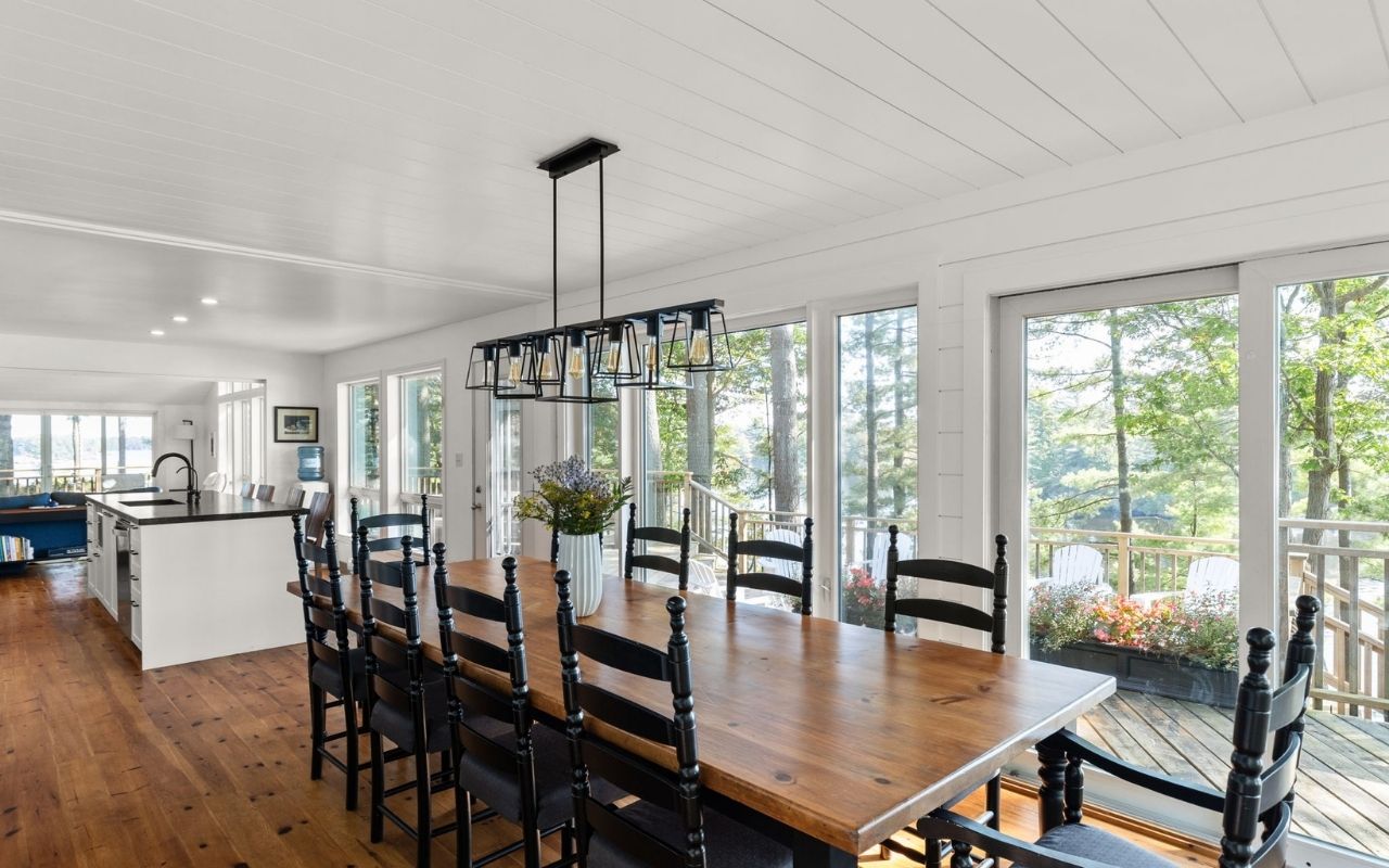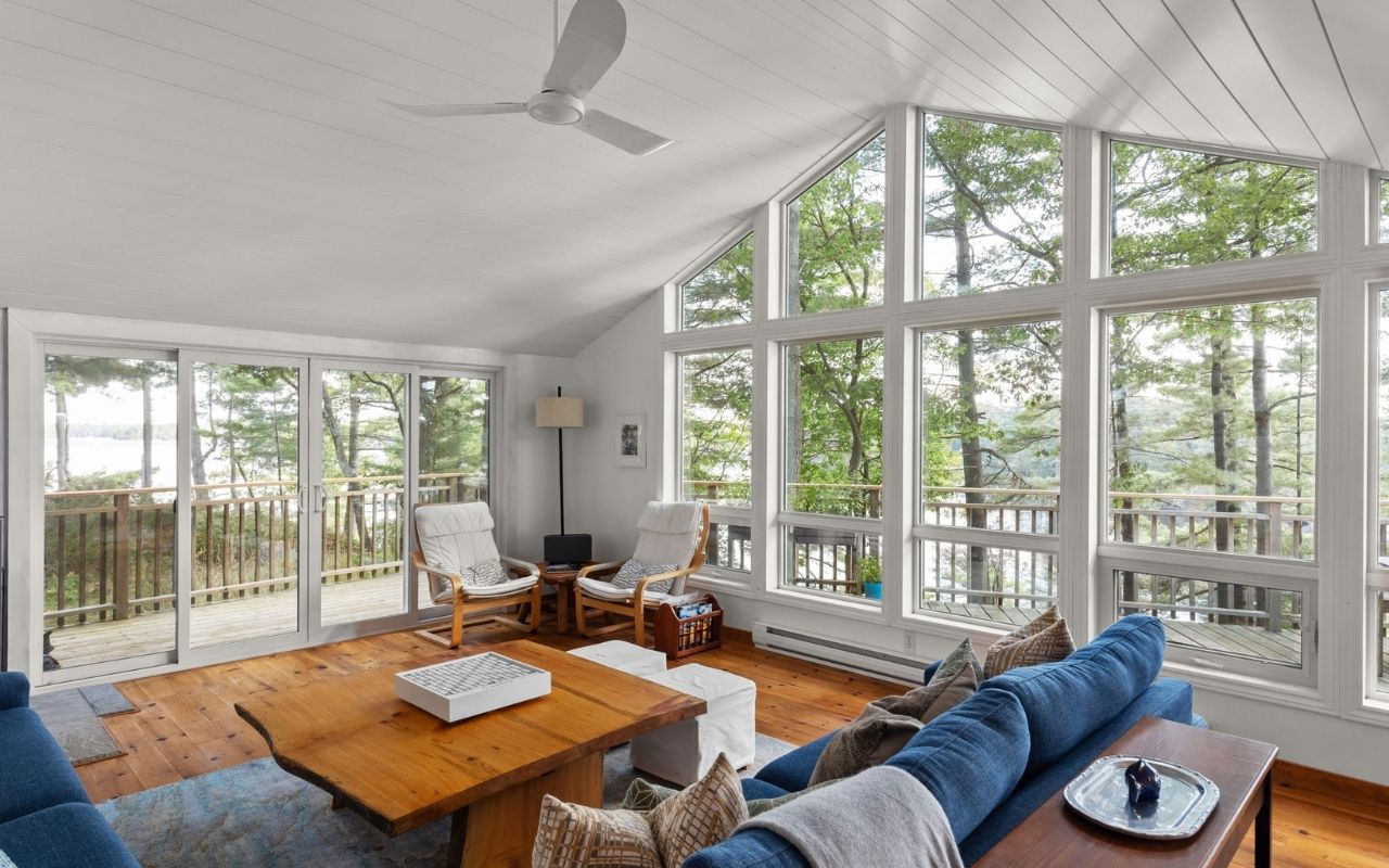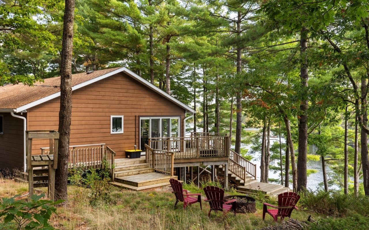 A truly extraordinary waterfront escape just 1.5 hours from Toronto, this Muskoka cottage is your private sanctuary surrounded by the rugged beauty of the Canadian Shield. This recently renovated 4-bedroom cottage boasts floor-to-ceiling windows that frame stunning views facing east, south, and west, giving you sun-soaked days and magical sunsets. The open-concept design features a grand dining room, chefs kitchen, and vaulted 11-foot ceilings in the living room, allowing you to fully appreciate the grandeur of the lake from every angle. Step outside to nearly 1,200 square feet of deck space, perfect for lounging in a Muskoka chairs as you take in the serene waterfront and escape with the sounds of the loons.